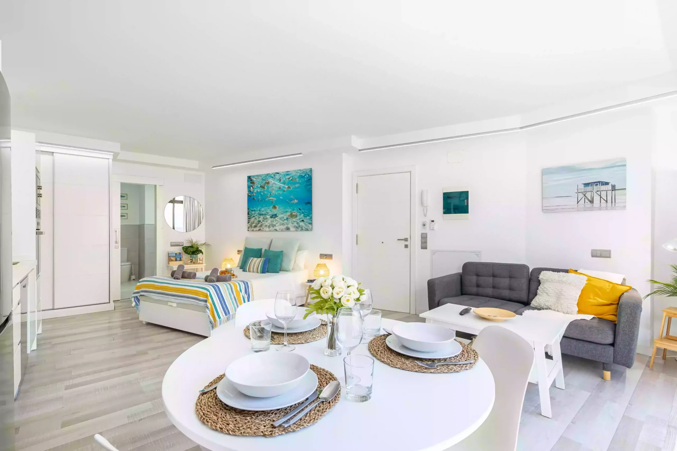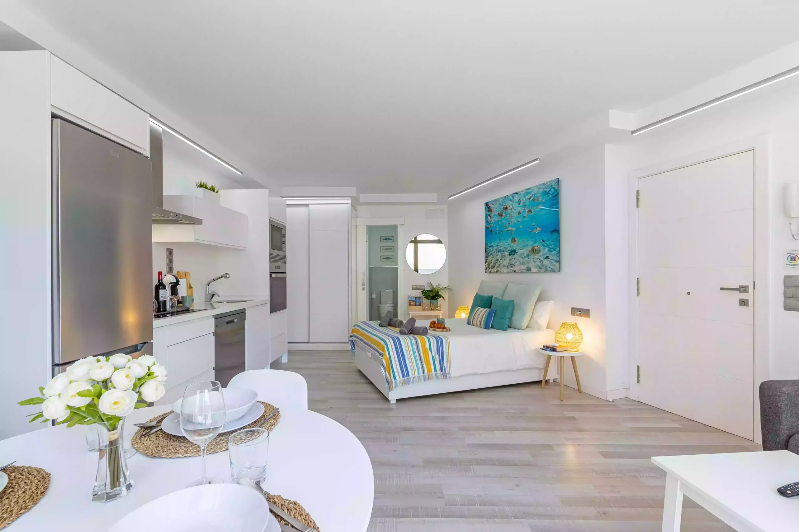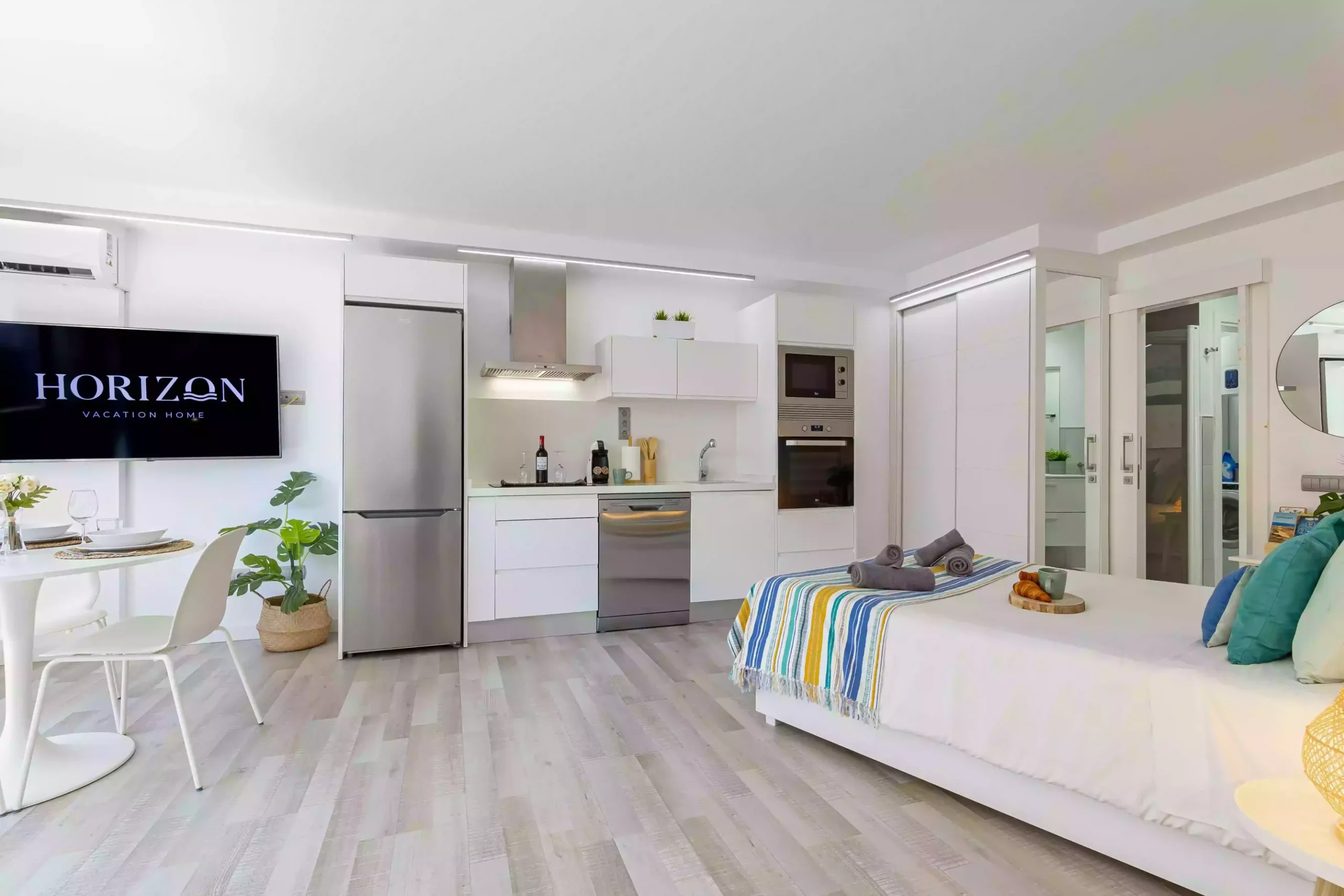Estudio con muy buena ubicación, a 300 metros de Playa de Morro Besudo (conocida como Playa del pirata). Está a 5,8 Km. del centro de Playa del Inglés. Tiene A/C en el salón.